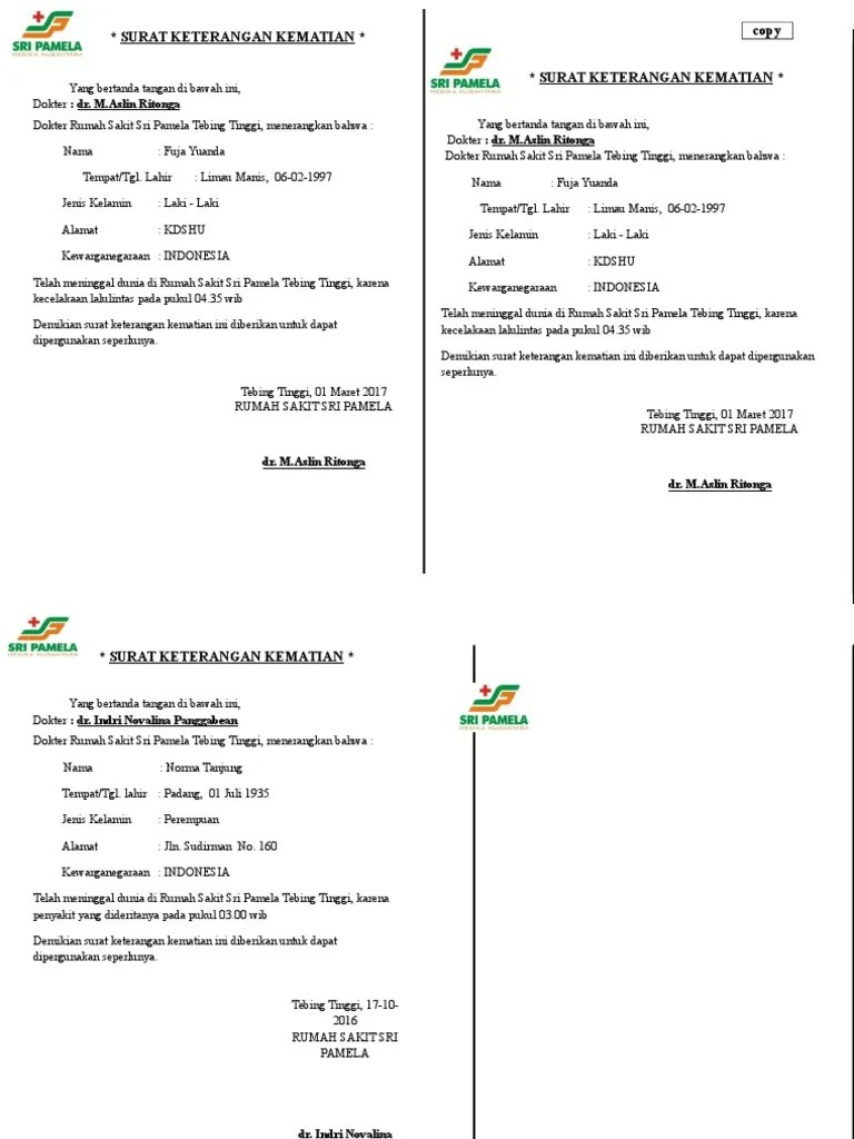 Dengan mencari langsung contohnya di google mungkin kita bisa mendapatkan format surat keterangan kematian yang kita butuhkan jika kita menggunakan kode di atas. Tapi jangan asal melaporkan kematian ya, biasanya orang yang akan mencatatkan kematian dari seseorang tersebut adalah dari pihak keluarga. Contoh surat keterangan kerja untuk pembuatan rekening. Contoh surat lamaran kerja yang lengkap sesuai dengan kebutuhan kamu. Surat keterangan kematian merupakan suatu keterangan tentang kematian yang dibuat oleh dokter.